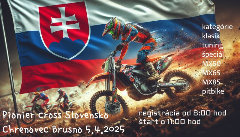 Pionier cross Slovensko Vás pozýva na druhé preteky sezóny 2025 v Chrenovci-Brusne 5.4.2025. Preteky sa uskutočnia na trati v Chrenovci-Brusne(GPS 48°46'32.2"N 18°42'46.7"E.