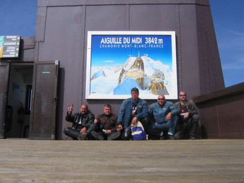 Chceme doraziť do Chamonix, tak okrem zastávky pod Galibierom, kde sme si pri stole medzi stromčekmi dali „obednú“ pauzu o pol štvrtej, zastavujeme len na benzínkach. Prechádzame cez Albertville a v Ugine nás uzavretá cesta posiela na zákrutovú obchádzku. Tempo celkom slušné, stúpame znova do kopcov, dookola sa už mračí, v jednom mestečku chytáme mokrú cestu. Do kempu prichádzame okolo pol ôsmej. Herky najprv odmieta stan, ale po zistení ceny sa k nám pridáva. Dostávame flek mimo ostatých kemperov, ale zato blízko recepcie. Hneď na začiatku nás recepčná upozorňuje na nočný kľud, asi pozná motorkárov. Herky ešte odskakuje na nákup a cigaretky za 9 €. Radosť fajčiť. Aby recepčná dokázala, že ten nočný kľud myslí vážne, prichádza nás upozorniť na golďasovu hudbu. Keďže jeden z plánov na ďalší deň bolo aj navštíviť známe vo Švajčiarsku, tak borovičku šetríme a popíjame whisky. Cazzo pri pohľade na fajčiacu horu nezabúda pripomenúť, že pršať nebude. Definitívny plán sa nakoniec nedohodol, ideme spať, veď ráno múdrejšie večera.