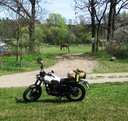Potom som aj trochu spanikáril. Kľúče od bielej krásky som si vložil do vrecka, no keď mi zvonil telefón, tak mi vypadli. Neuvedomil som si to, no keď som pofotil okolie a chcel štartovať, nebolo čím. Do prilby som postupne vyberal všetko z dostupných vrecák, no nikde nič, len kľúčik náhradný. Zopakoval som to asi trikrát a nič. Neostávalo nič iné len sa vrátiť na miesta kde som fotil a nakoniec sa kľúč zaleskol v tráve. Tak to som už toho mal naozaj dosť a v altánku pri ceste som vybalil všetko, posilnil sa a už napratané veci v batohu ho zmenšili a sedelo sa mi potom pohodlnejšie.